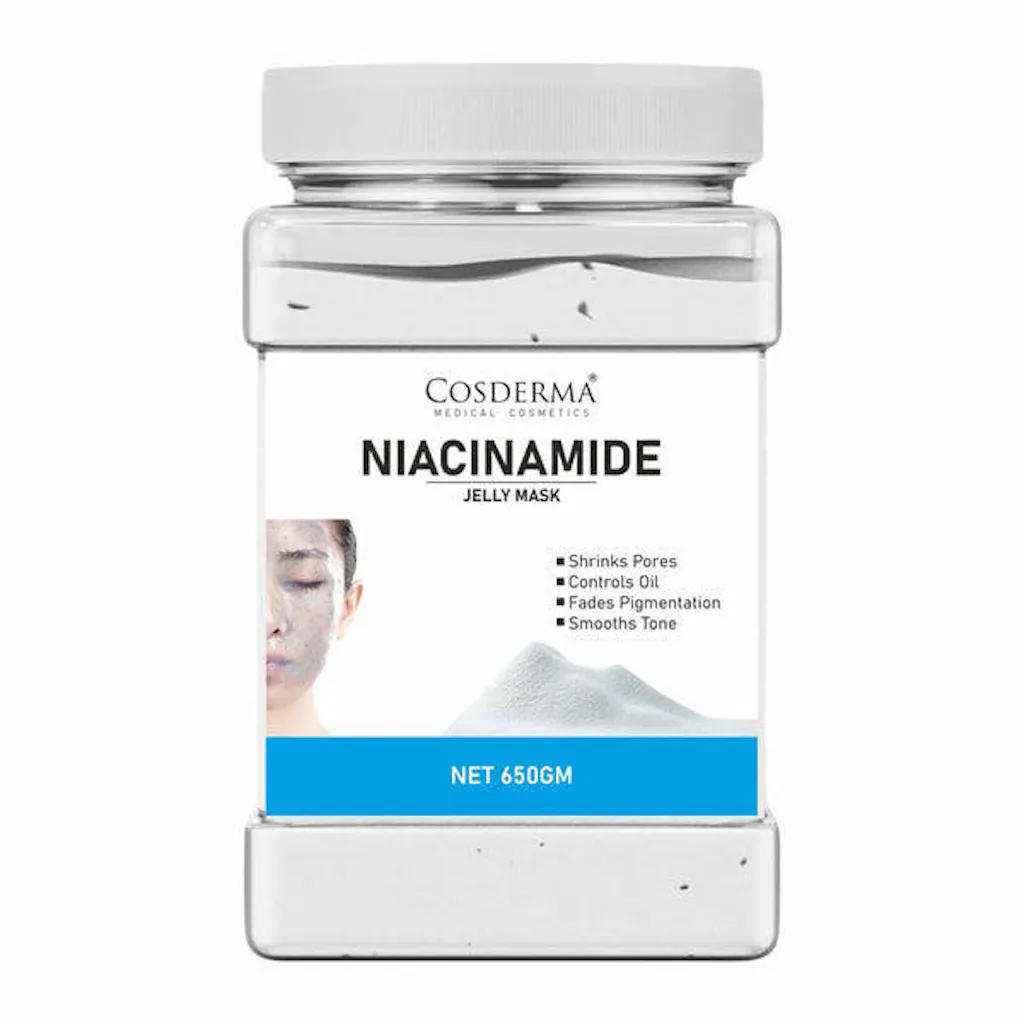 Product Description: Cosderma Niacinamide Jelly Mask is a skin-balancing facial treatment designed to shrink pores, control oil production, and fade pigmentation for a visibly clearer and more even-toned complexion. Powered by Niacinamide (Vitamin B3) and soothing botanicals like Bluecorn Petals, this professional jelly mask is ideal for oily, acne-prone, and dull skin types.