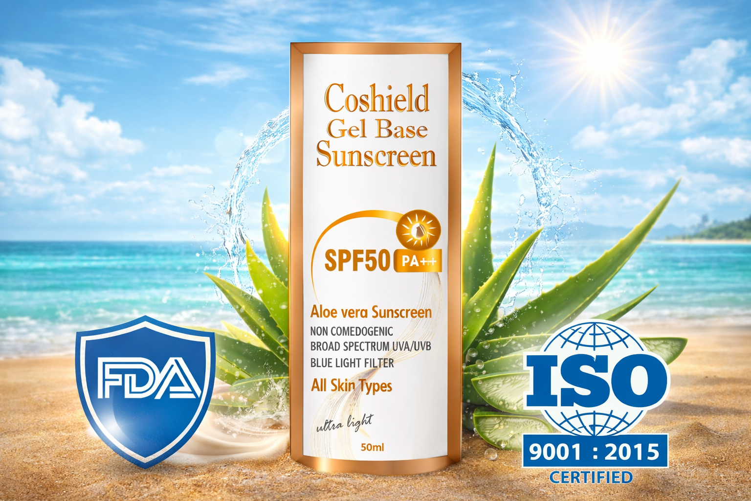 Coshield Gel Base Sunscreen SPF50 PA+++ | Aloe Vera, Non-Comedogenic, Ultra-Light Formula